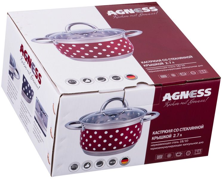 кастрюля со стеклянной крышкой agness горошек нерж. сталь 2,7 л диаметр=18 см высота=10 см (кор=6ш