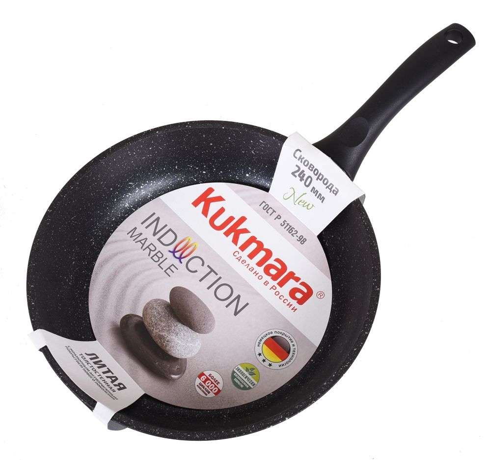Сковорода 240мм с ручкой АП, (темный мрамор), линия "Marble Induction" смти240а