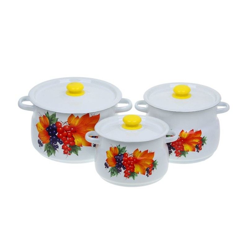 Набор посуды серии Смородина Стальэмаль произведен из высококачественной эмалированной стали с соблюдением требований ГОСТ 24788-2001. В состав набора входят: