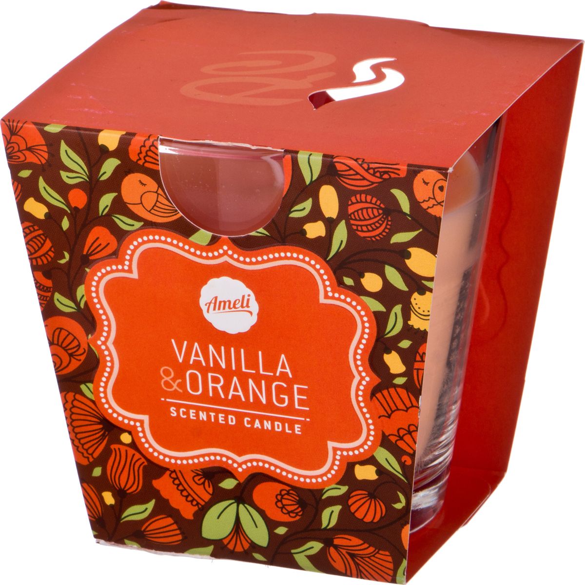 Ароматическая свеча в стакане ваниль и апельсин диаметр=8,5 см. высота=9 см.